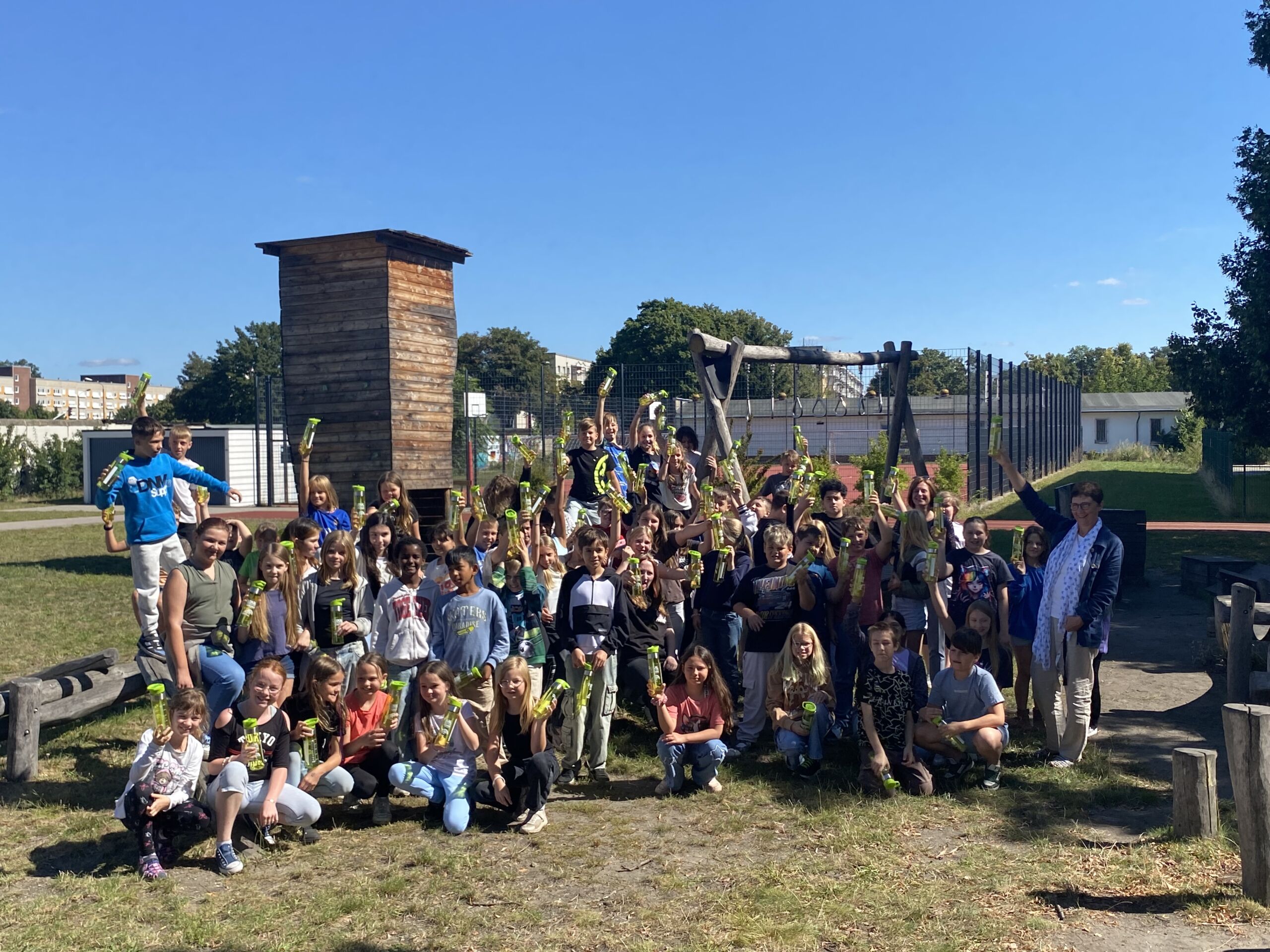 Am 18. August überreichten die Versorgungsbetriebe Hoyerswerda GmbH (VBH) 80 Trinkflaschen an alle Fünftklässler der Oberschule in der Stauffenberg-Straße in Hoyerswerda.