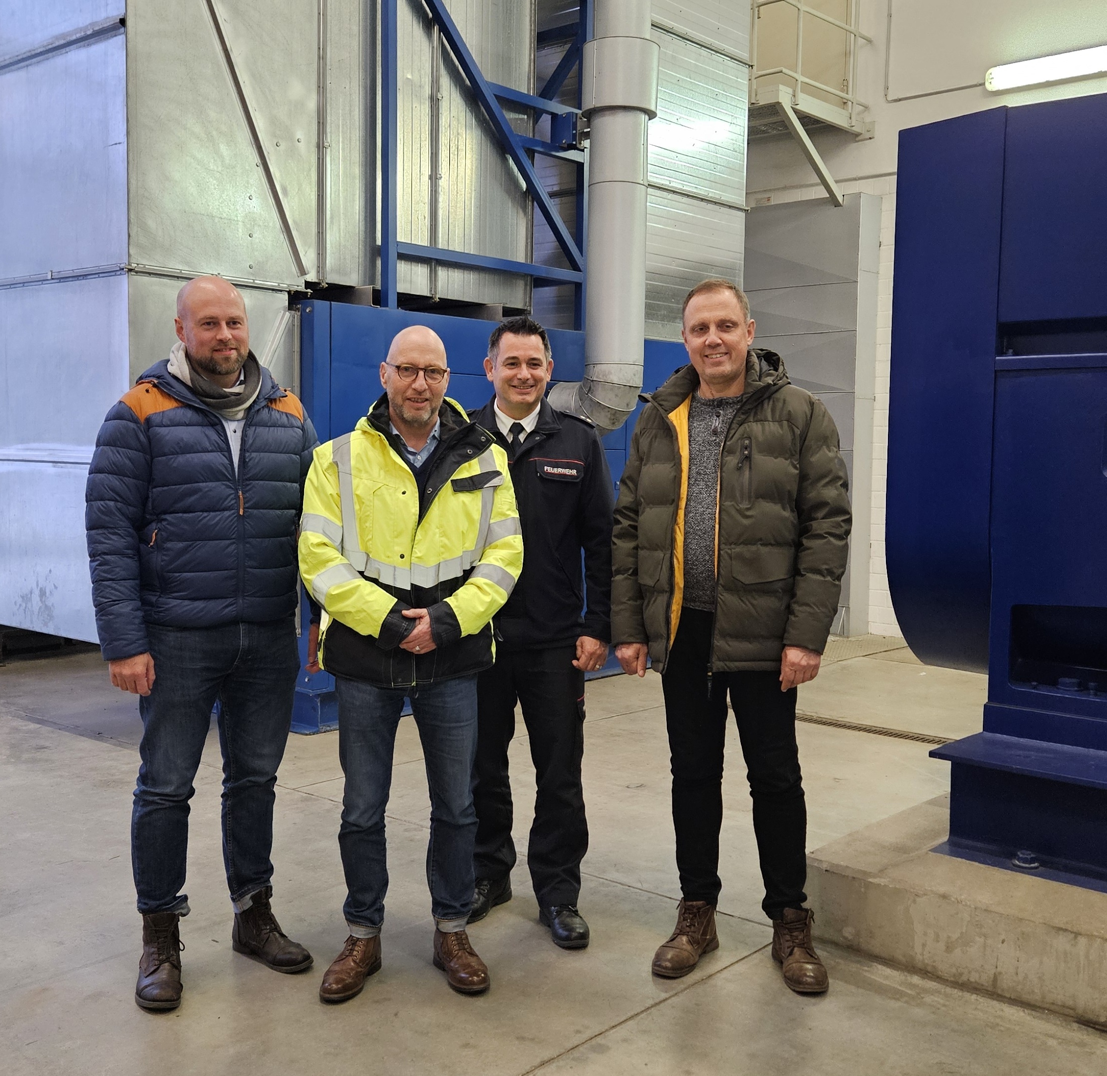 Foto: Jan Schulze, Prokurist und Technischer Leiter der VBH, Wolf-Thomas Hendrich, Geschäftsführer SWH und VBH, Benny Bastisch, Fachbereichsleiter Feuerwehr sowie Mirko Pink, Bürgermeister der Stadt Hoyerswerda (v.l.n.r.) informierten in einem gemeinsamen Pressetermin zur Versorgungssicherheit (Foto: Janett Schneider).