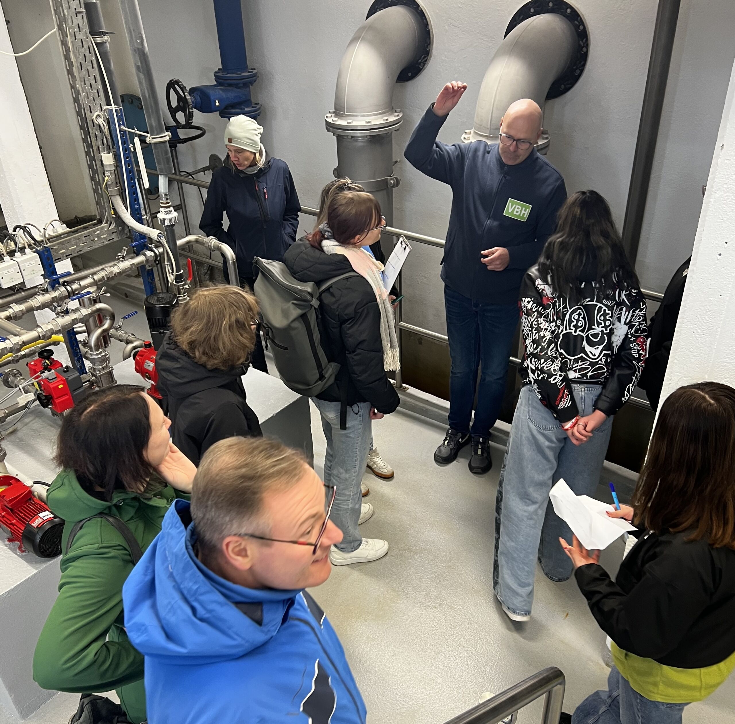 Foto: Kai Ruthenberg, Leiter des Bereiches Wasser/Gas bei VBH (m.), erläutert die Wasseraufbereitung im Wasserwerk Zeißig (Fotos: VBH/Sarah Klinger).